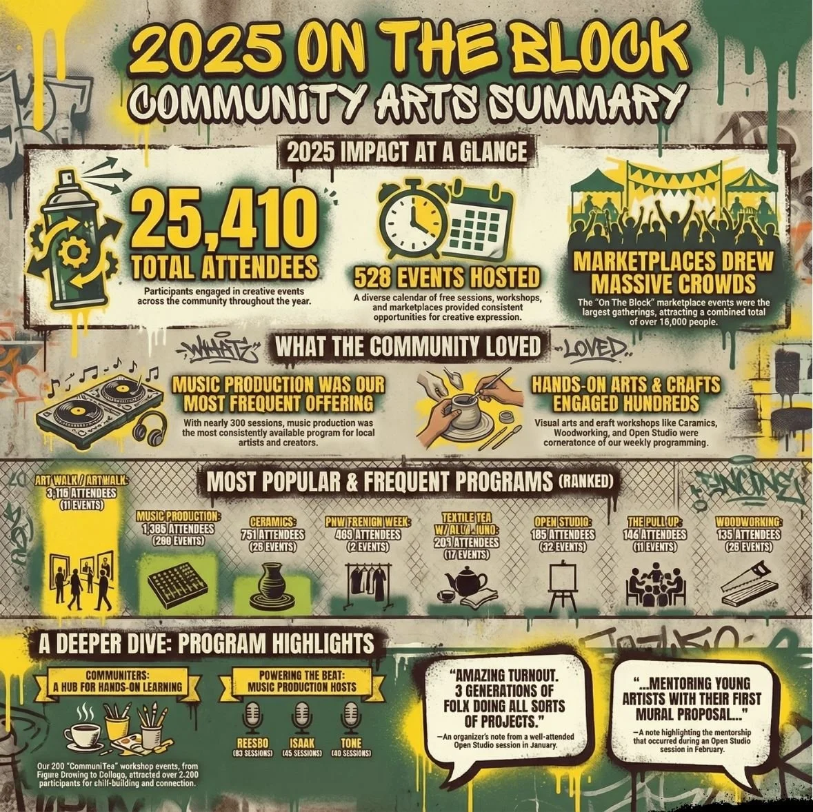 Being a foundational part of the On the Block Creative Ecosystem and supporting thousands of hours of free, accessible, creative community programs annually, improving equity, economic opportunity, and well-being of Capitol Hill Seattle and beyond.
